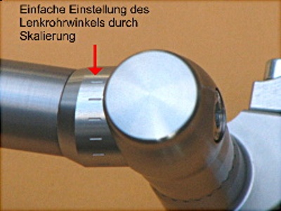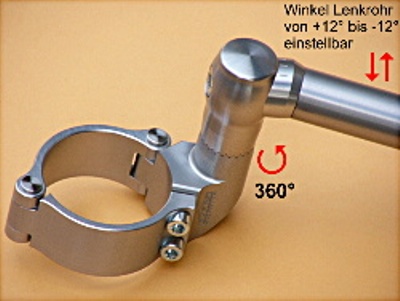 - Kröpfung (Lenkrohrwinkel zur Horizontalen) von +12° bis -12° stufenlos einstellbar