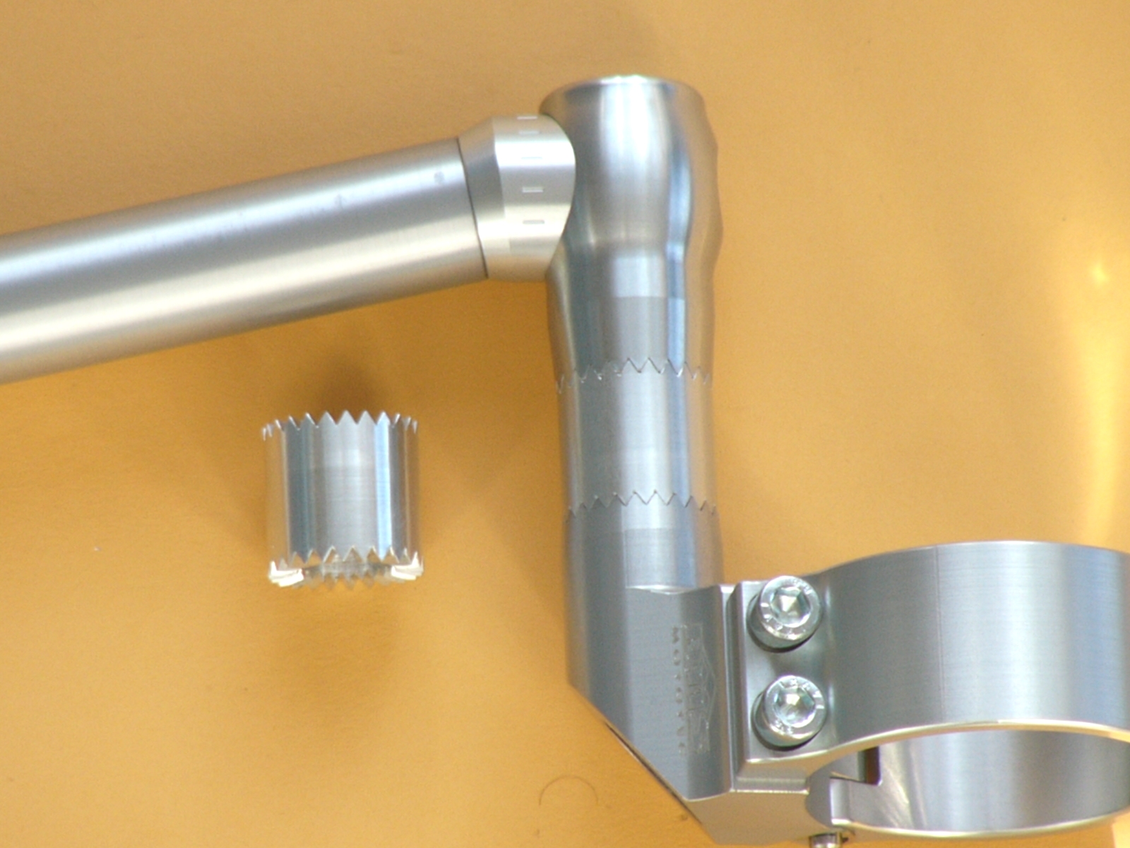 - durch eine zusätzliche Verdrehmöglichkeit mittes Verzahnung arretiert lässt sich der Lenkerstummel in der Position optimal anpassen. Änderungen an Verkleidungen sind somit nicht nötig