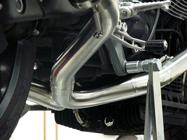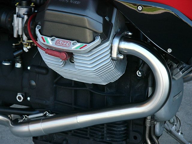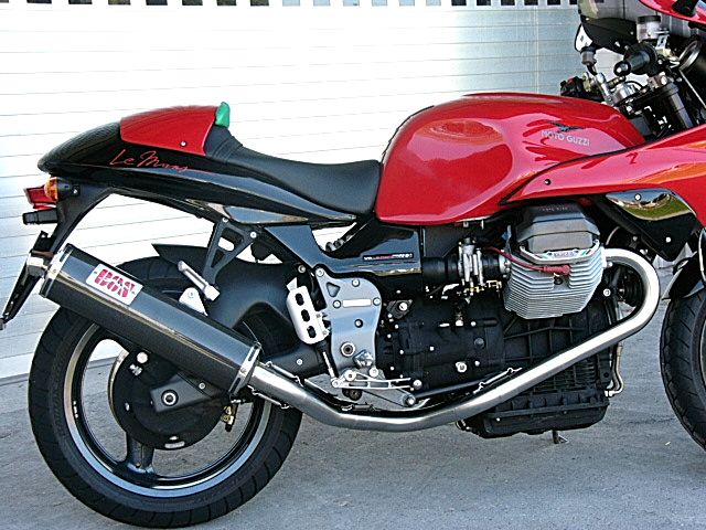 Diese Auspuffanlage ist aus sehr leichtem Edelstahlrohr mit nur 1,0 mm Wandung gefertigt. Durch die konische Bauart ist sie optimal auf die Guzzis abgestimmt. Als Schalldämpfer verwenden wir speziell von uns umgebaute MISTRAL EG-Schalldämpfer (nicht im Lieferumfang).