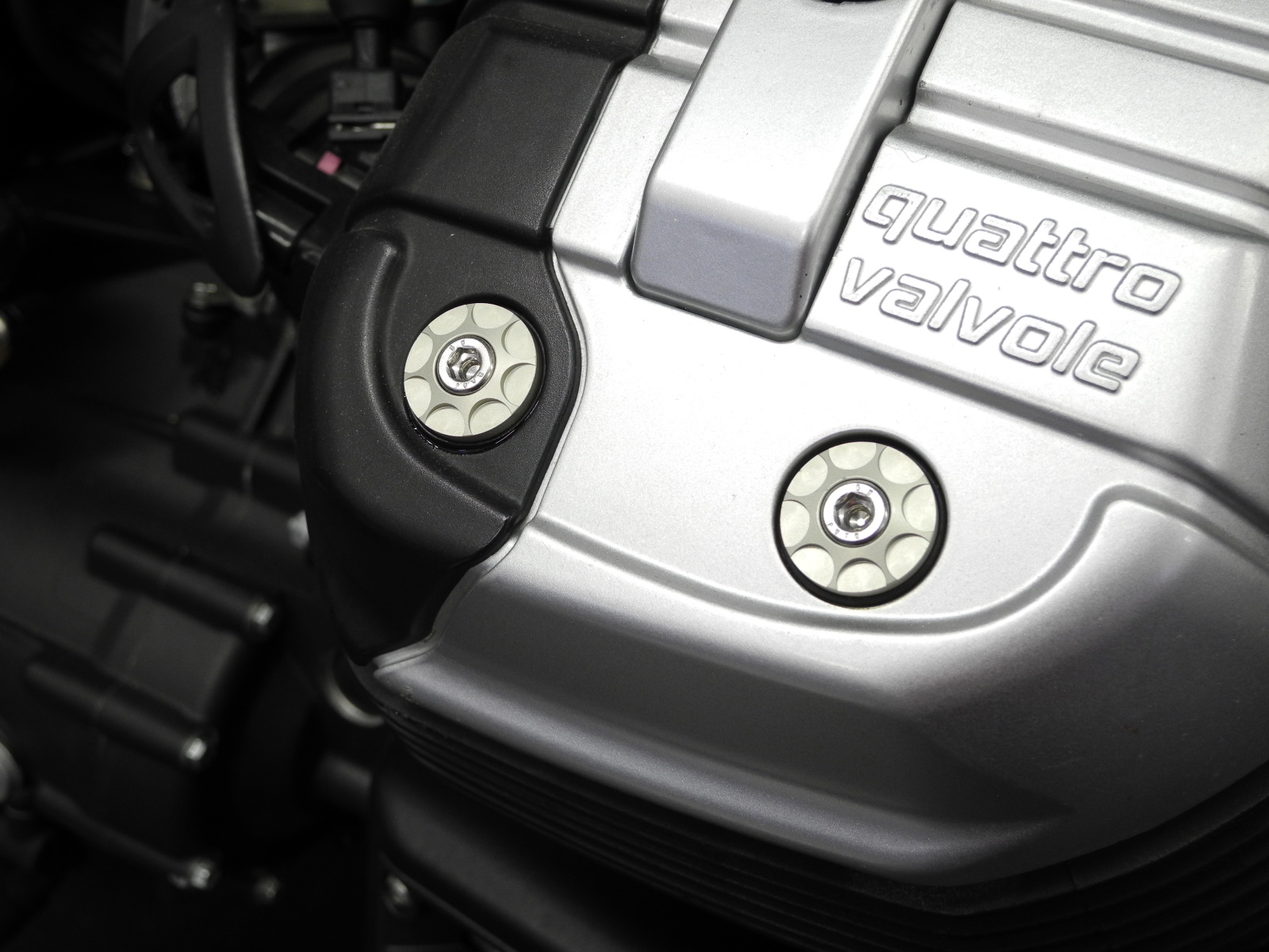 Diese schönen Ventildeckelschrauben bestehend aus Edelstahlschraube mit Dauerdichtscheibe und eloxierter Aluscheibe haben den entscheidenden Vorteil, daß der Innensechskant standfest ist. Sollte er mal deformiert sein kann man einfach die Edelstahlschraube austauschen.